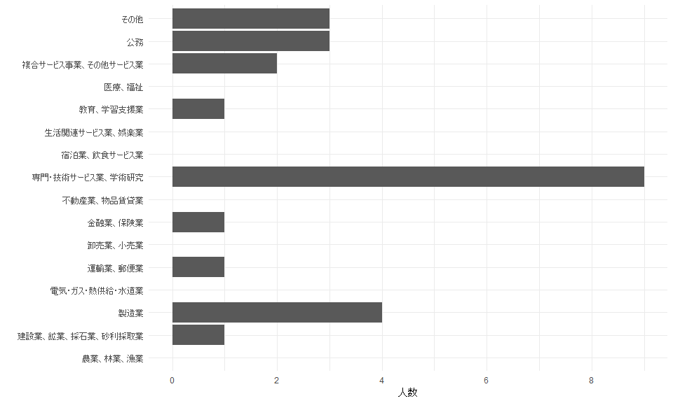 業種は、日本標準産業分類(令和5年7月改定)に基づいて作成しております。 なお「専門・技術サービス業、学術研究」はコンサルティング会社やシンクタンクが含まれます。